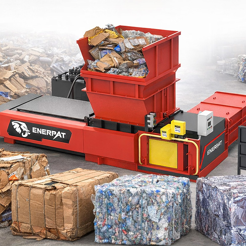 の ENERPAT 自動ツインラムベーラー は、大容量の廃棄物管理向けに設計された耐久性の高い産業グレードのソリューションです。大規模な設計 148トンのメインラム そして 88トンエジェクターシリンダー、 これ ツインラムベーラー 高反発材料と多様な廃棄物の流れを効率的に超高密度に粉砕します。 750kgベール。急速に 15秒のサイクルタイム そして大きな 2000mm投入ホッパー、ばらついた廃棄物を均一で高密度の束に変換し、物流、人件費、保管コストを大幅に削減します。