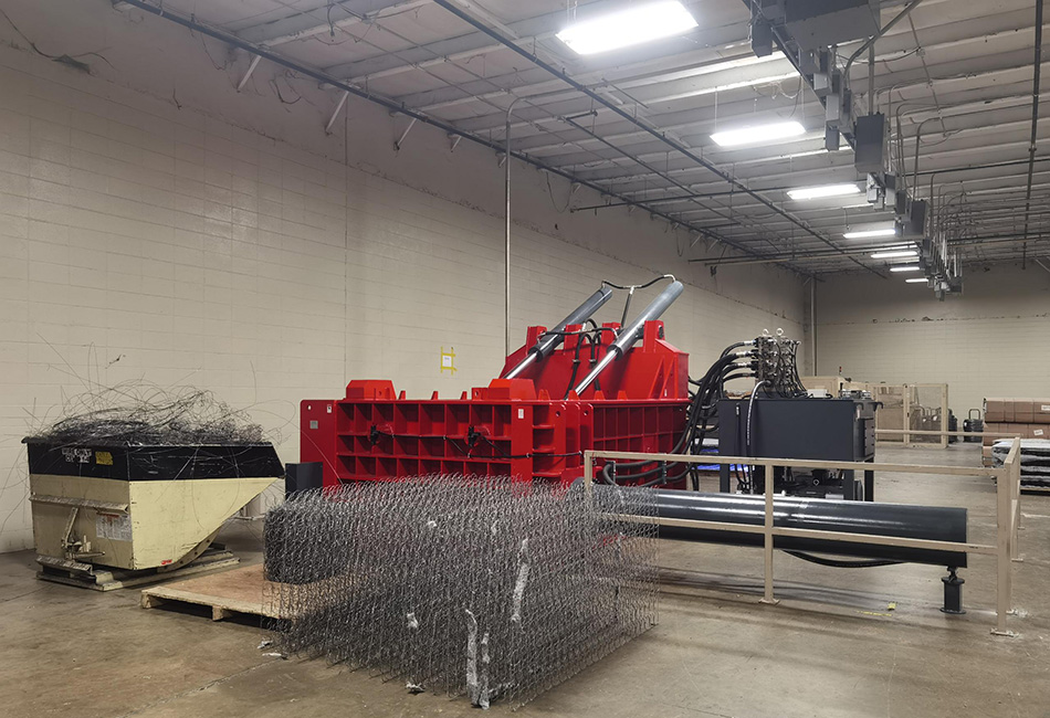 材料は、フォークリフトとアンロード装置を使用して金属ベーラーの圧縮チャンバーに輸送されます。